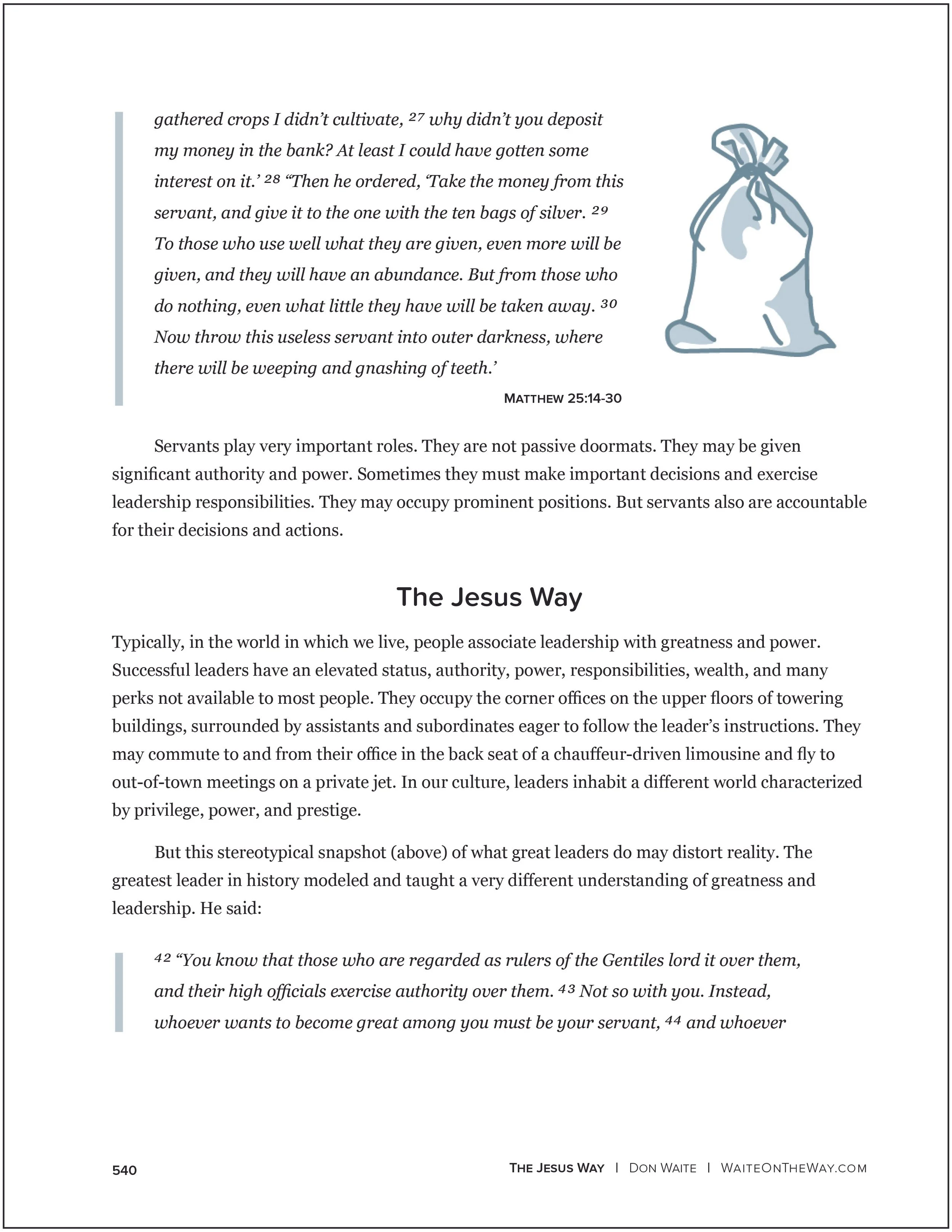 Typically, in the world in which we live, people associate leadership with greatness and power. Successful leaders have an elevated status, authority, power, responsibilities, wealth, and many perks not available to most people. They occupy the corner offices on the upper floors of towering buildings, surrounded by assistants and subordinates eager to follow the leader’s instructions. They may commute to and from their office in the back seat of a chauffeur-driven limousine and fly to out-of-town meetings on a private jet. In our culture, leaders inhabit a different world characterized by privilege, power, and prestige.