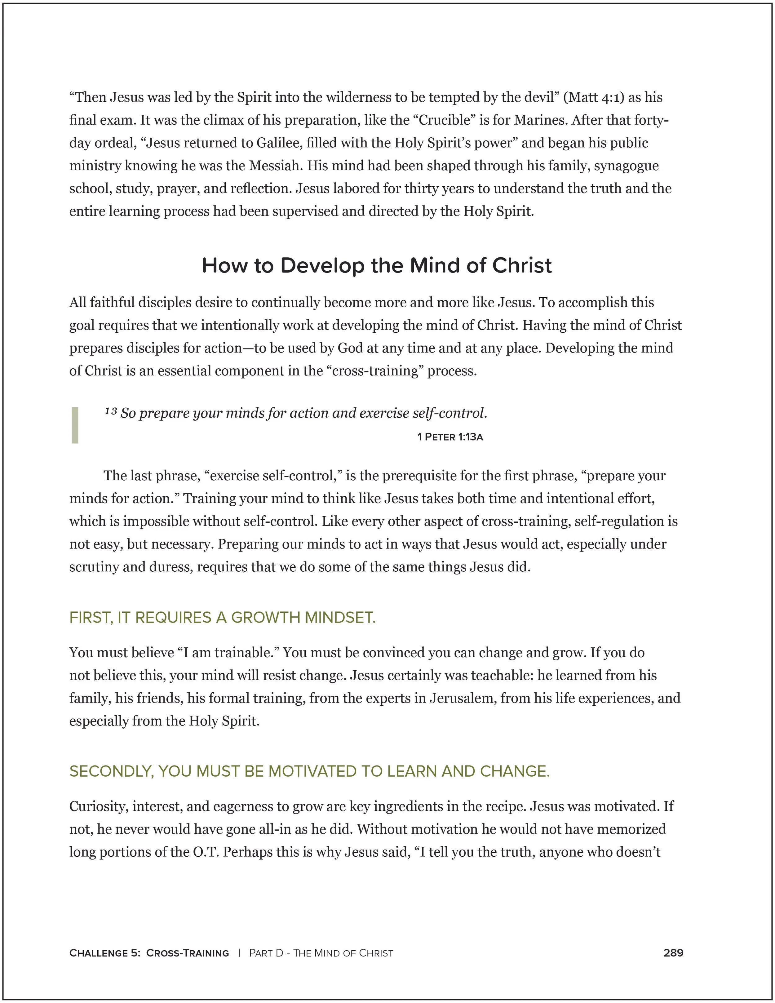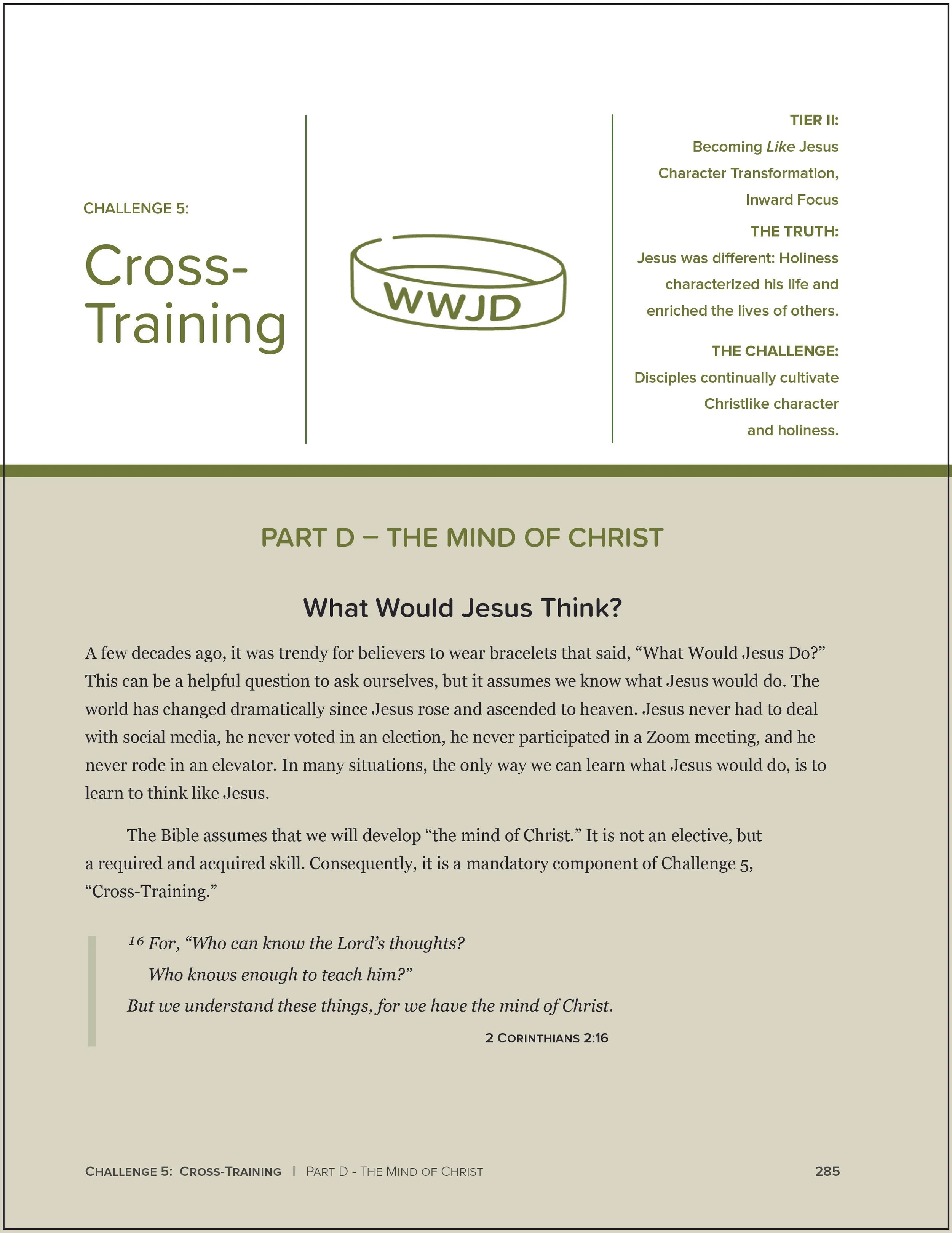 The Bible assumes that we will develop “the mind of Christ.” It is not an elective, but a required and acquired skill. Consequently, it is a mandatory component of Challenge 5, “Cross-Training.”